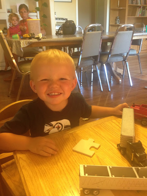 After drying off in the wind we came in and visited, while the boys played tractors.